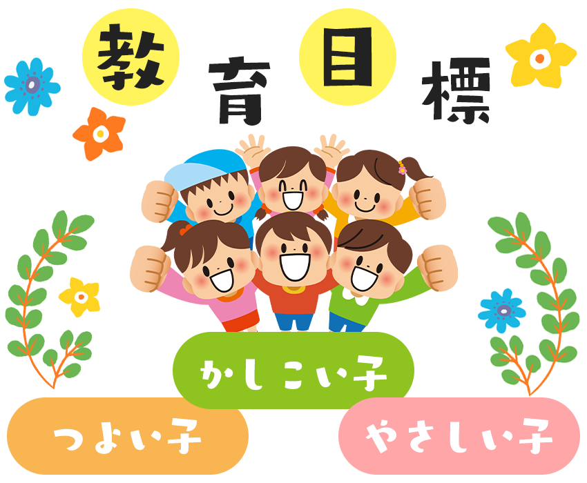 | かしこい子 | 自分で考え行動できる力を身につける。 沢山の本に触れる機会をつくり、視野の広い子に育てる。 |